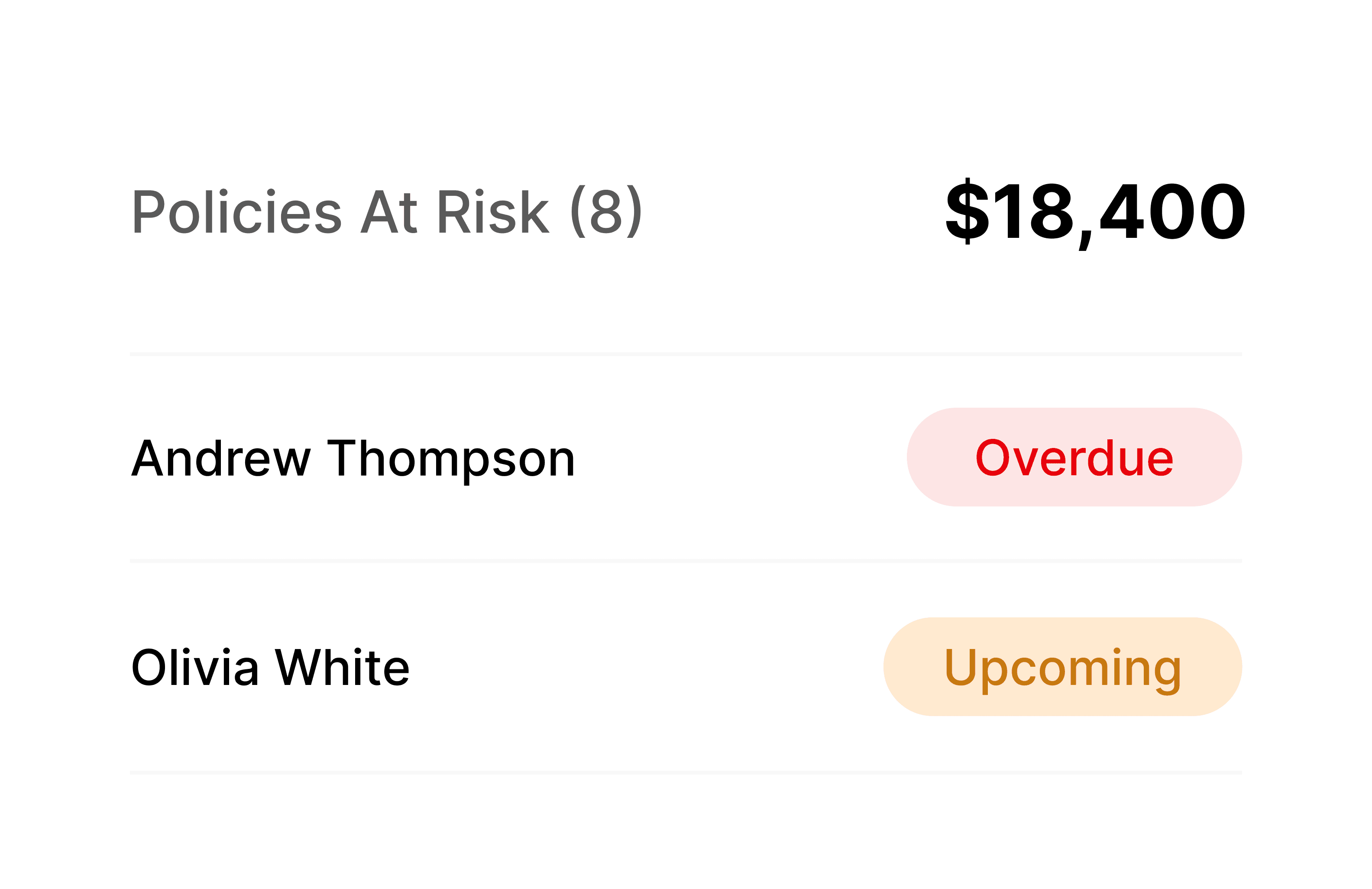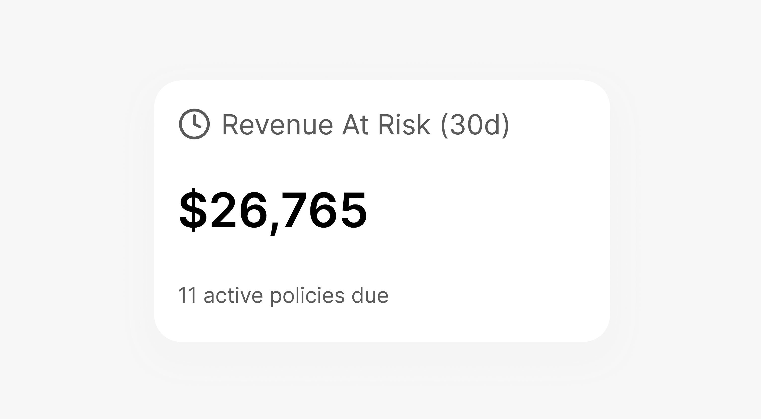Track revenue at risk, prioritize high-value clients, and follow up before policies expire.
